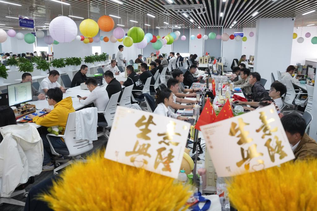 浙江盈和国际物流无限公司工做人员正在处置跨境电商货单(2024年10月10日摄)。记者 翁忻旸 摄。