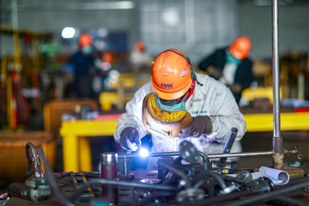 2024年12月21日,中船澄西扬州船舶无限公司工人正在功课。发(任飞 摄)!