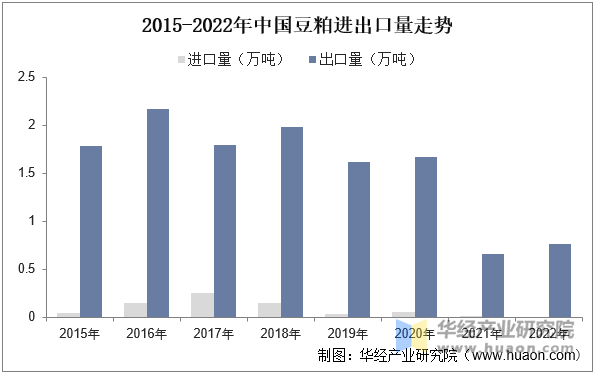 本文节选自华经财产研究院发布的《2022年中国豆粕财产现状,政策鞭策减量替代,短期需乞降价钱仍将居高位》,如需获取全文内容,可进入华经谍报网搜刮查看。就我国豆粕进出口量变更而言,国内全体豆粕进出口量较全体产量和上逛大豆进口量占比力小,全体影响较小,数据显示,我国豆粕进出口次要以出口为从,年均进口1-2万吨摆布,2021-2022年跟着国内豆粕求过于供环境加剧,全体进出口量较着下降,进口量别离为0。01万吨和根基没有,出口量别离为0。66万吨和0。77万吨。