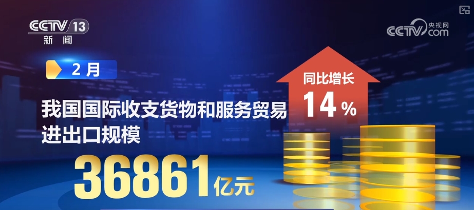 国度外汇办理局最新数据显示,2月,我国国际出入货色和办事商业进出口规模36861亿元,同比增加14%。2025年前两个月,国际出入货色和办事商业累计顺差8170亿元,创汗青同期最好程度,我国外贸实现优良开局。